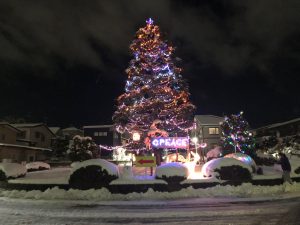 始めた事がきっかけでした。夕方以降暗くなるバス通りも、巨大なクリスマスツリーが