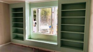 造作の海外風窓際ベンチ📖 かわいいカラフルな塗装で仕上げた、