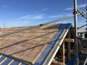 2階屋根葺き(ガルバリウム鋼板横葺き)